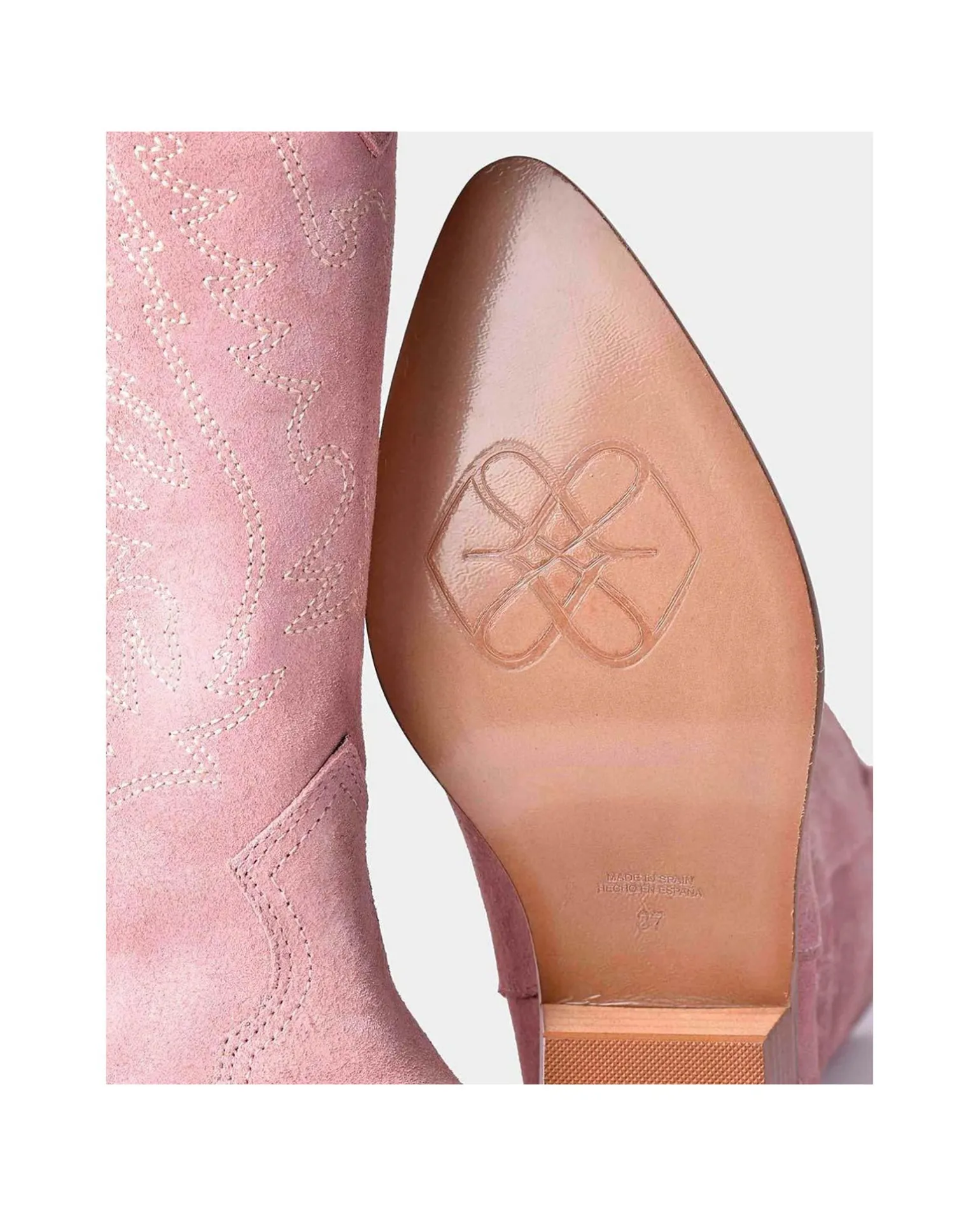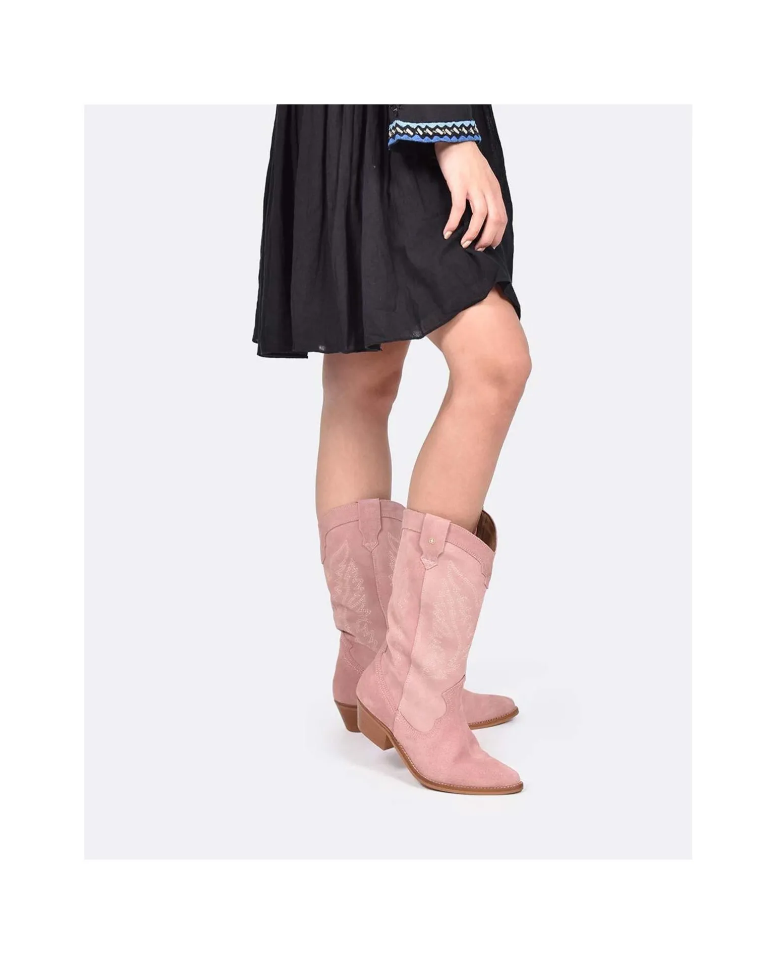DescripciónBotas Cowboy Color Rosa Palo Confeccionada En Piel De Napa De Alta Calidad Con TacÓN Bajo Cuadrado Y Punta De Pico.LÚCelas Con Faldas Y Vestidos Midi De Nuestra ColecciÓN.Detalles Del Producto