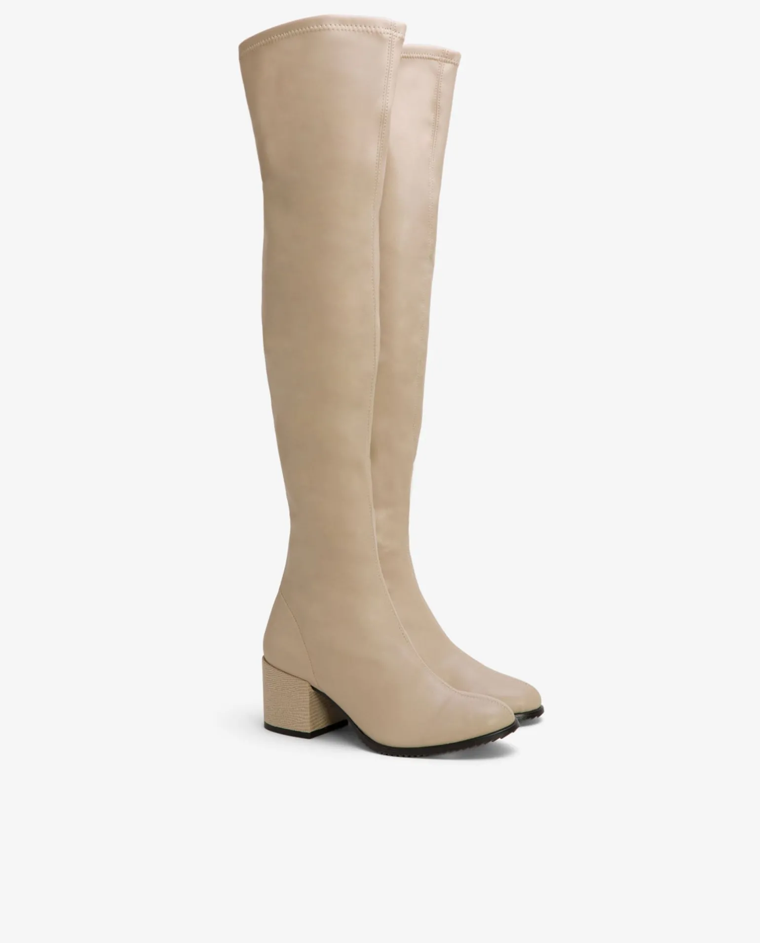 DescripciónBota Alta Estilo Mosquetera Realizada En Napa Stretch De Color Beig. Se Adapta A Las Piernas Y Las Estiliza. Ideal Para El Día A Día.