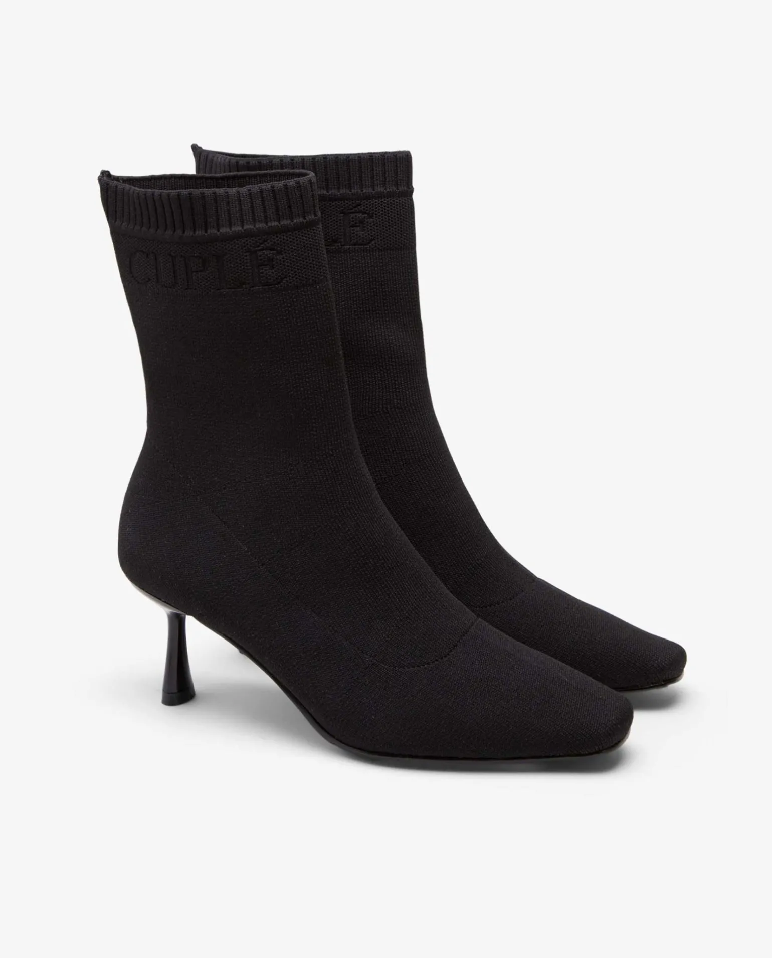 Botin Negro En Textil. Tacón Medio Fino. Terminacion En Punta