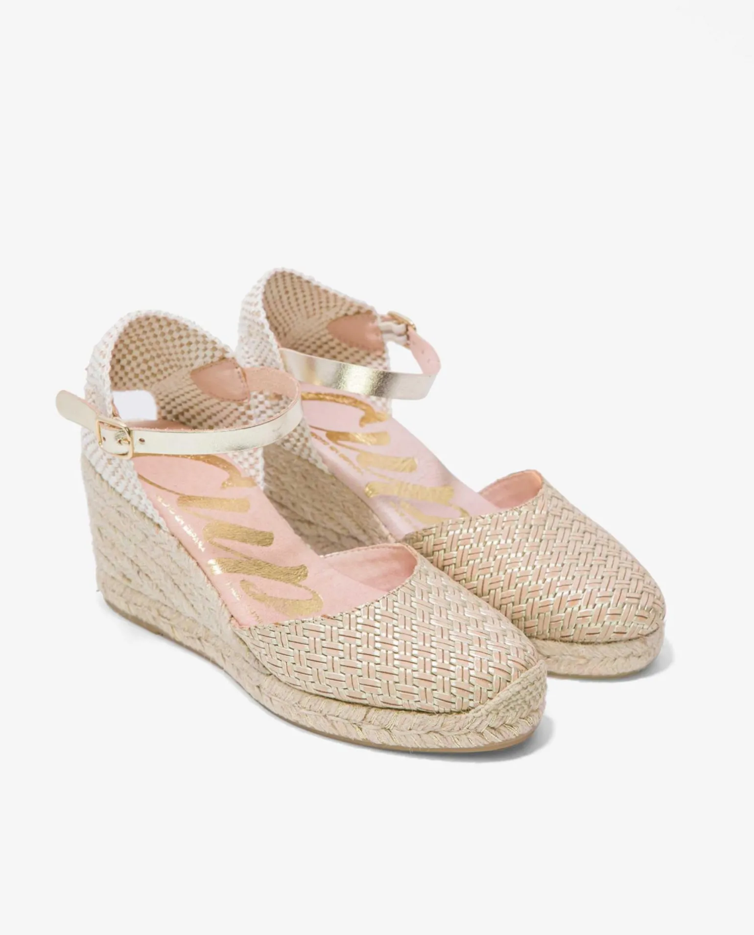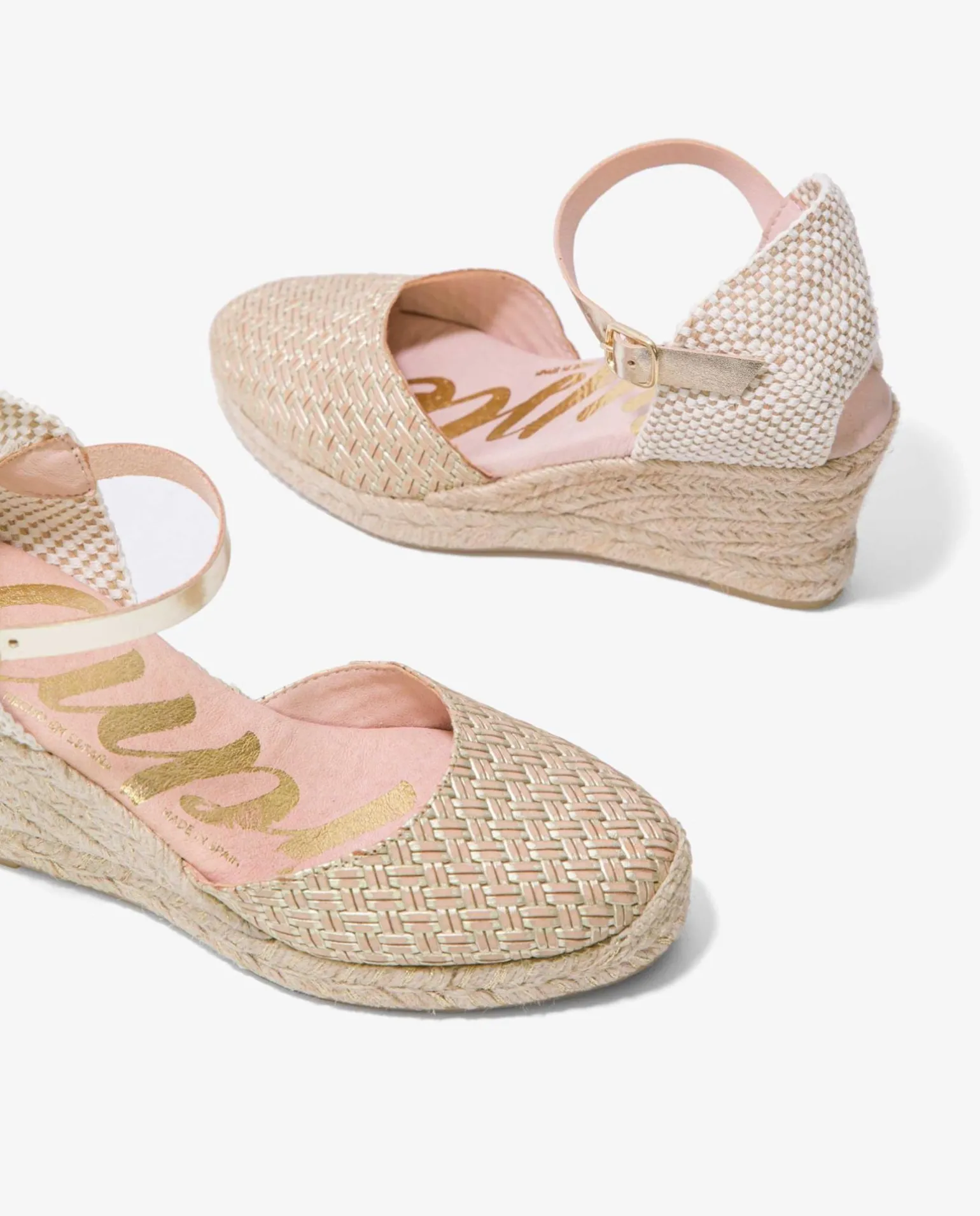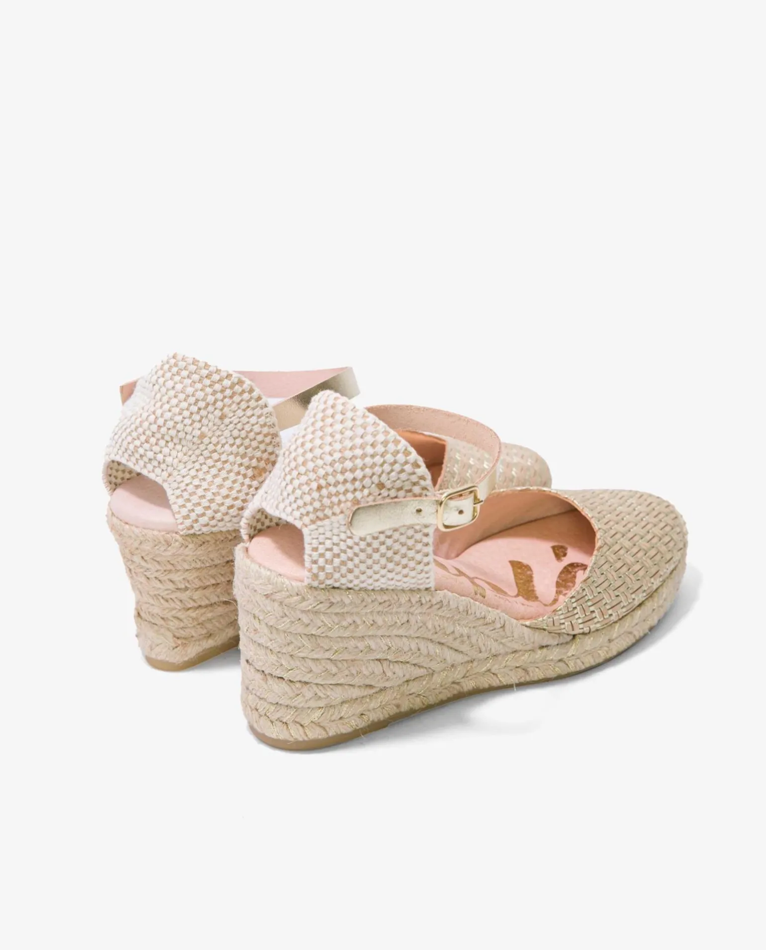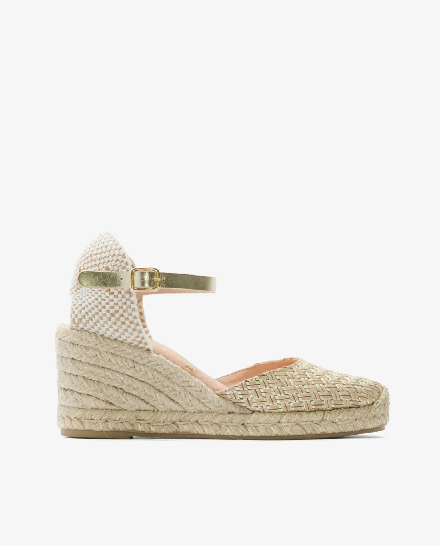 Cuña De Yute En Color Crema, Con Detalle En La Pulsera Tobillera De Color Dorado, Sujeción Mediante Hebilla Y Plataforma Alta. Todo Un Cásico Para Esta Temporada Primavera- Verano.