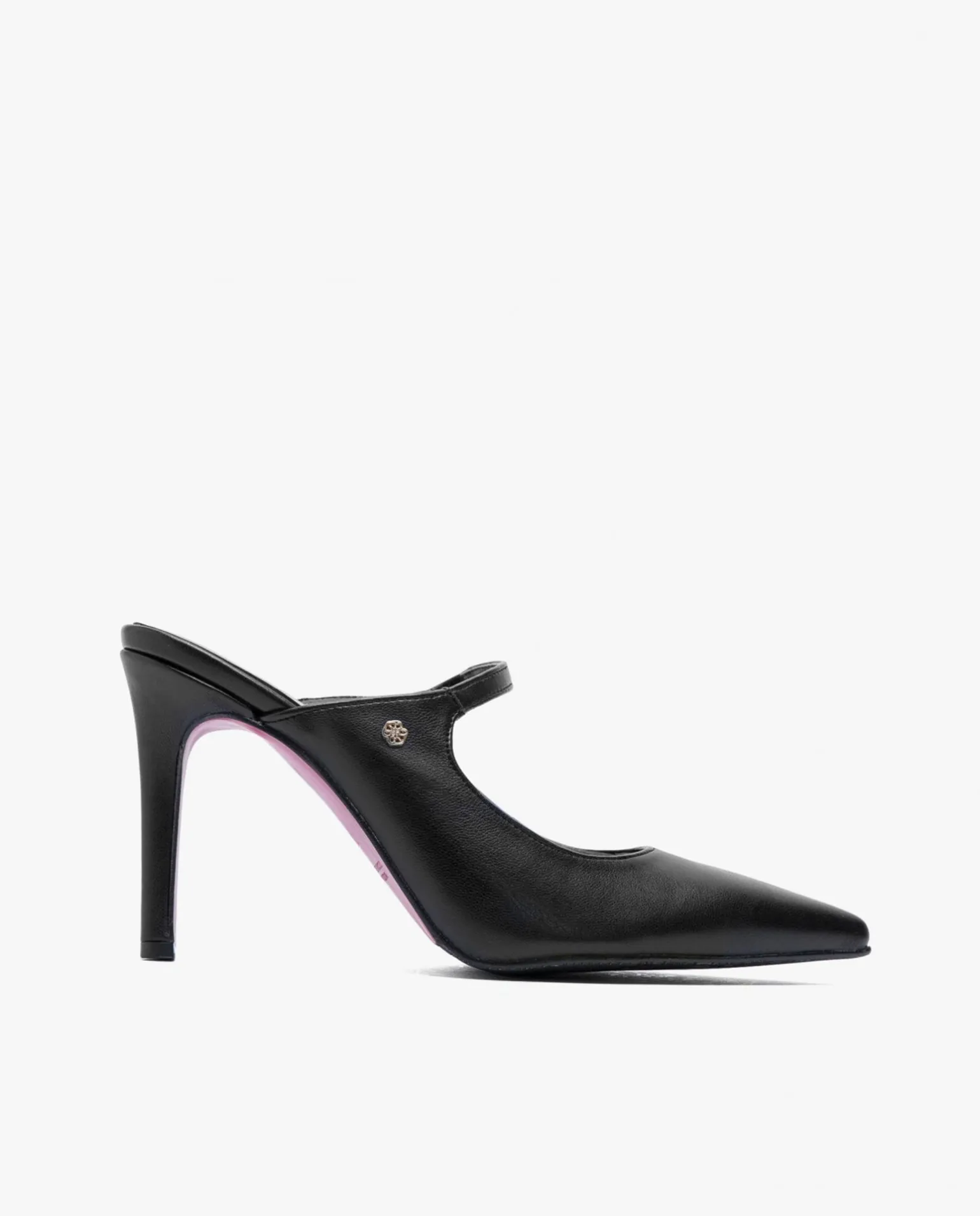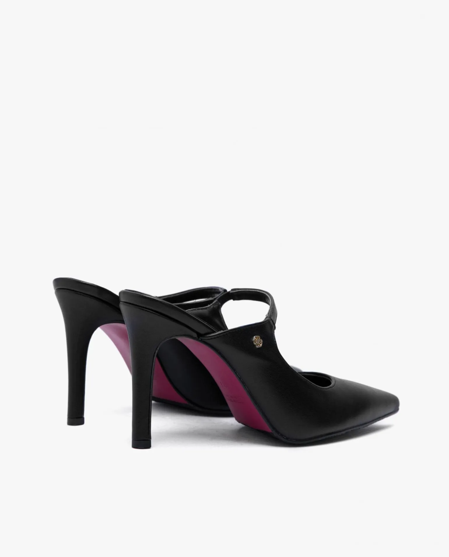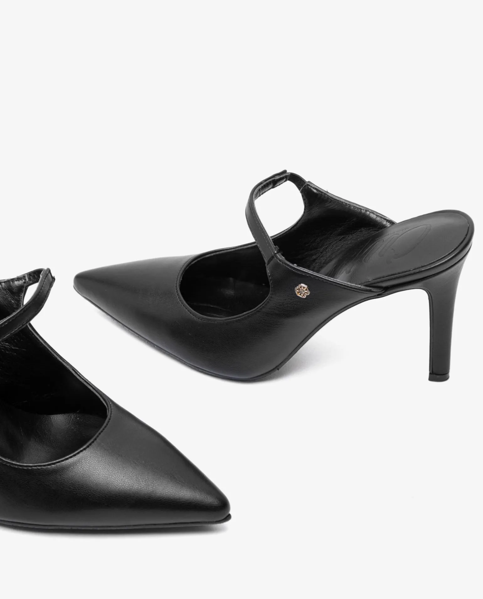 DescripciónDestalonado De TacÓN Alto Con Adorno Realizado En Napa De Color Negro. Para Estilismos Elegantes A Conjunto Con Una Falda Y Blusa De Colores Llamativos.Detalles Del Producto