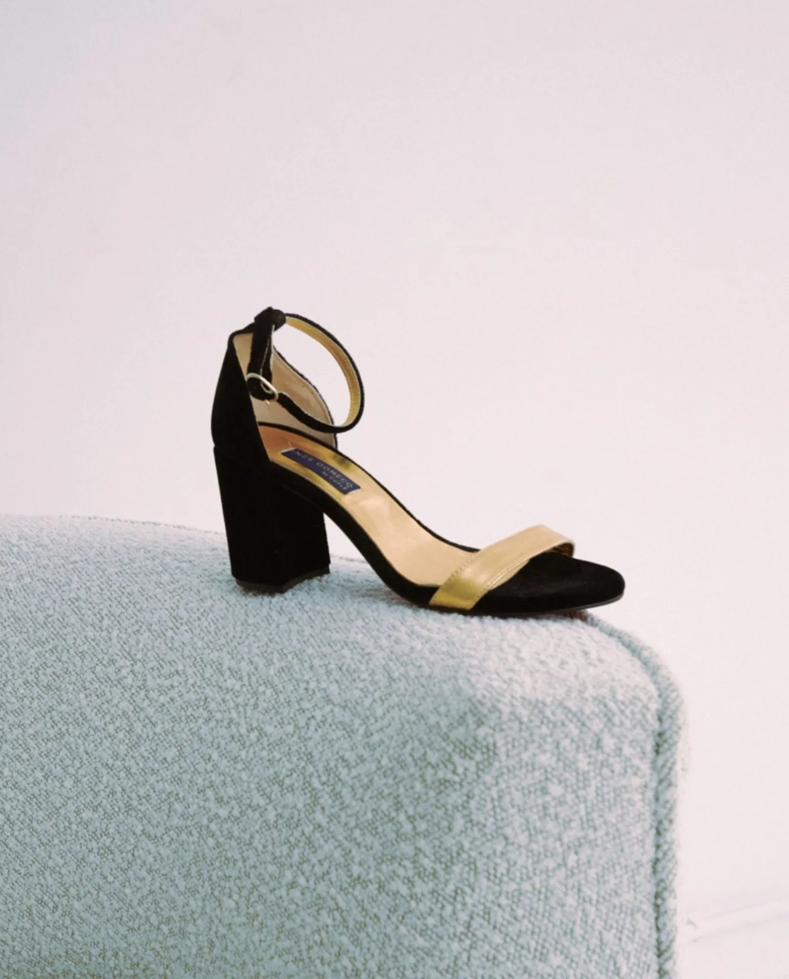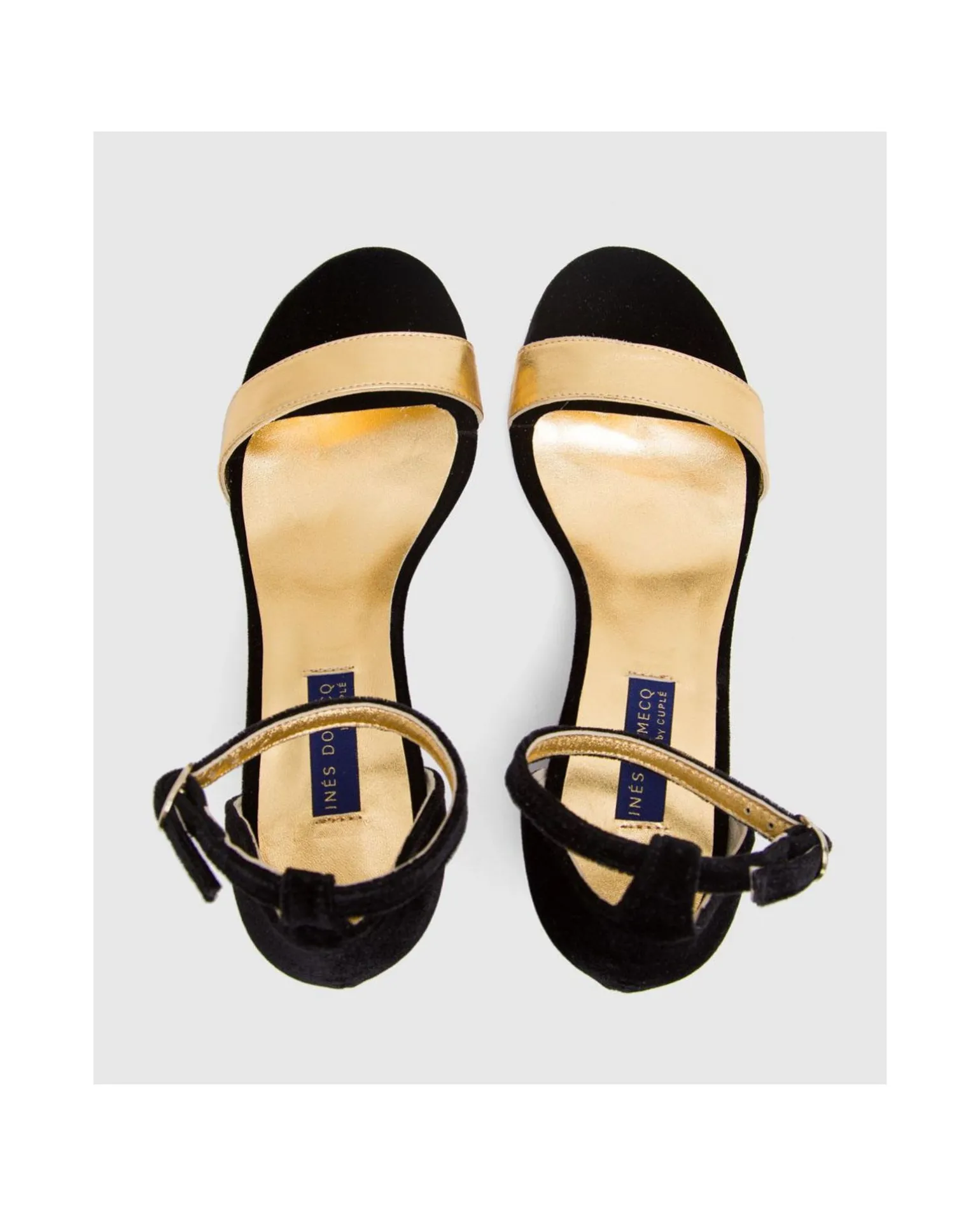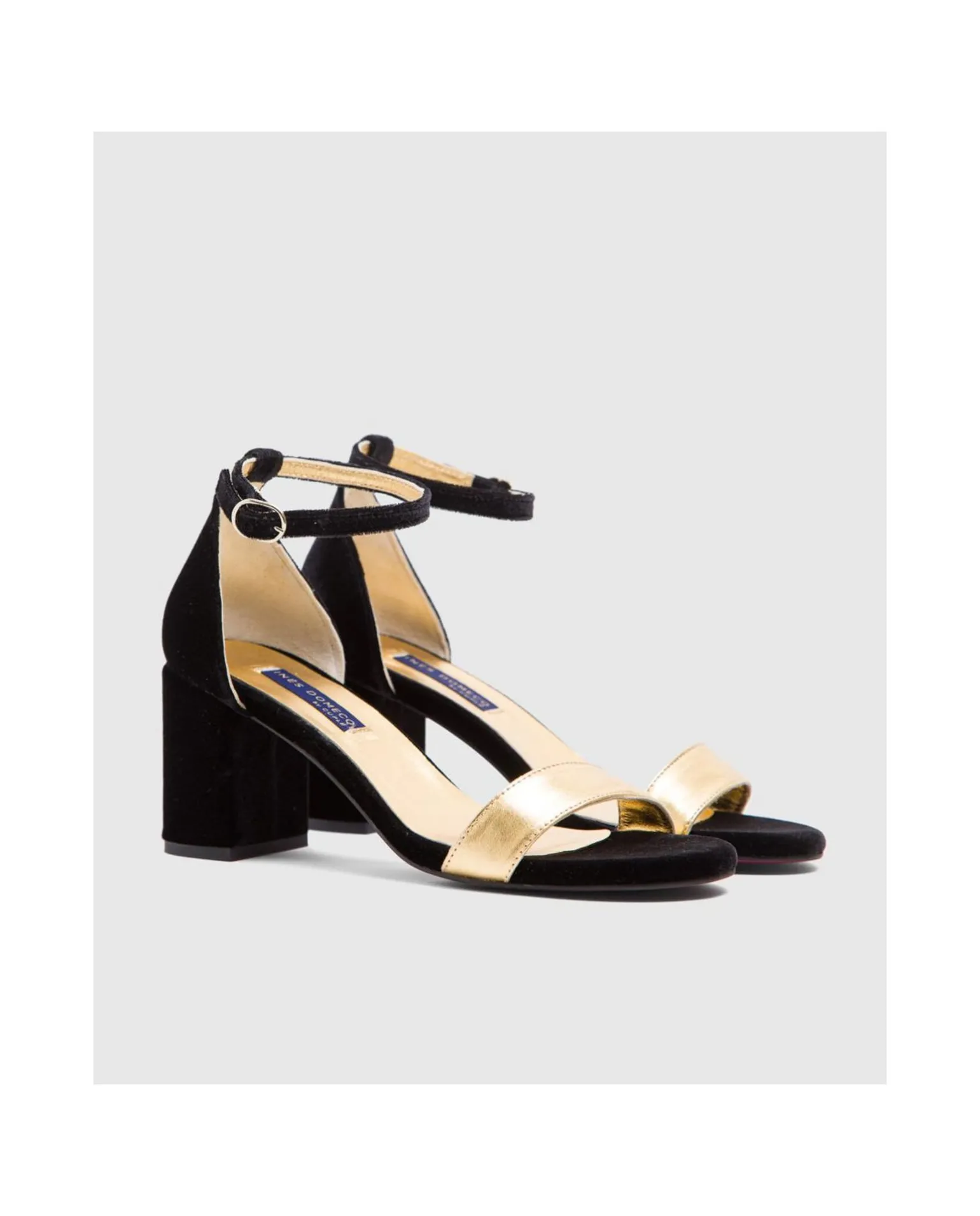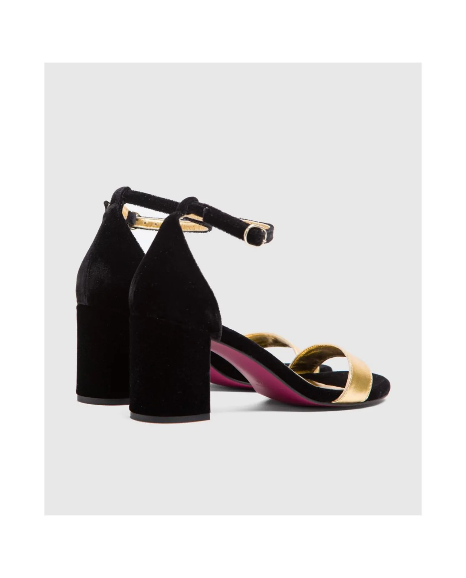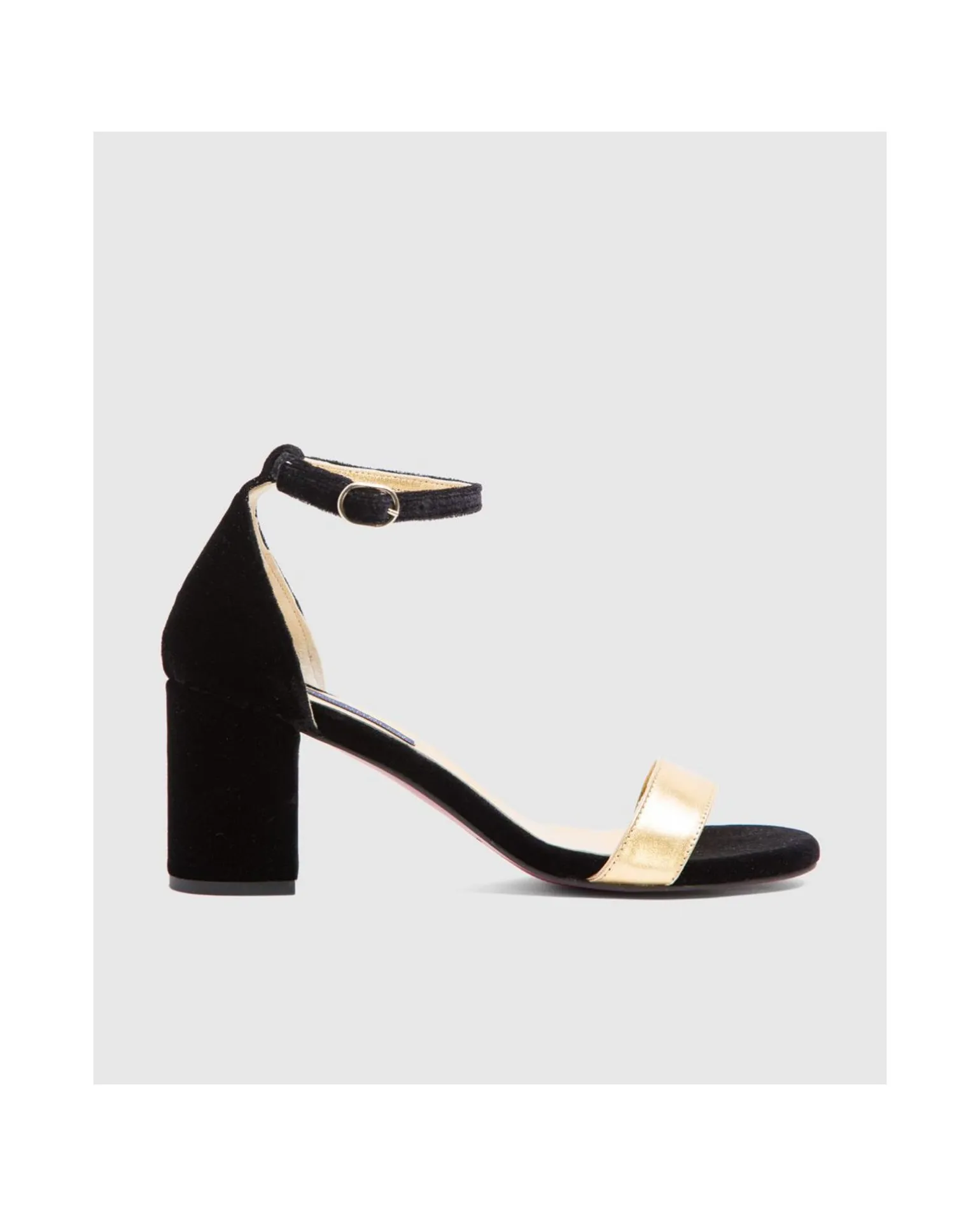 Sandalia De Tacón Medio Elaborada En Tercipelo. Pala En Tono Oro. Con Pulsera.