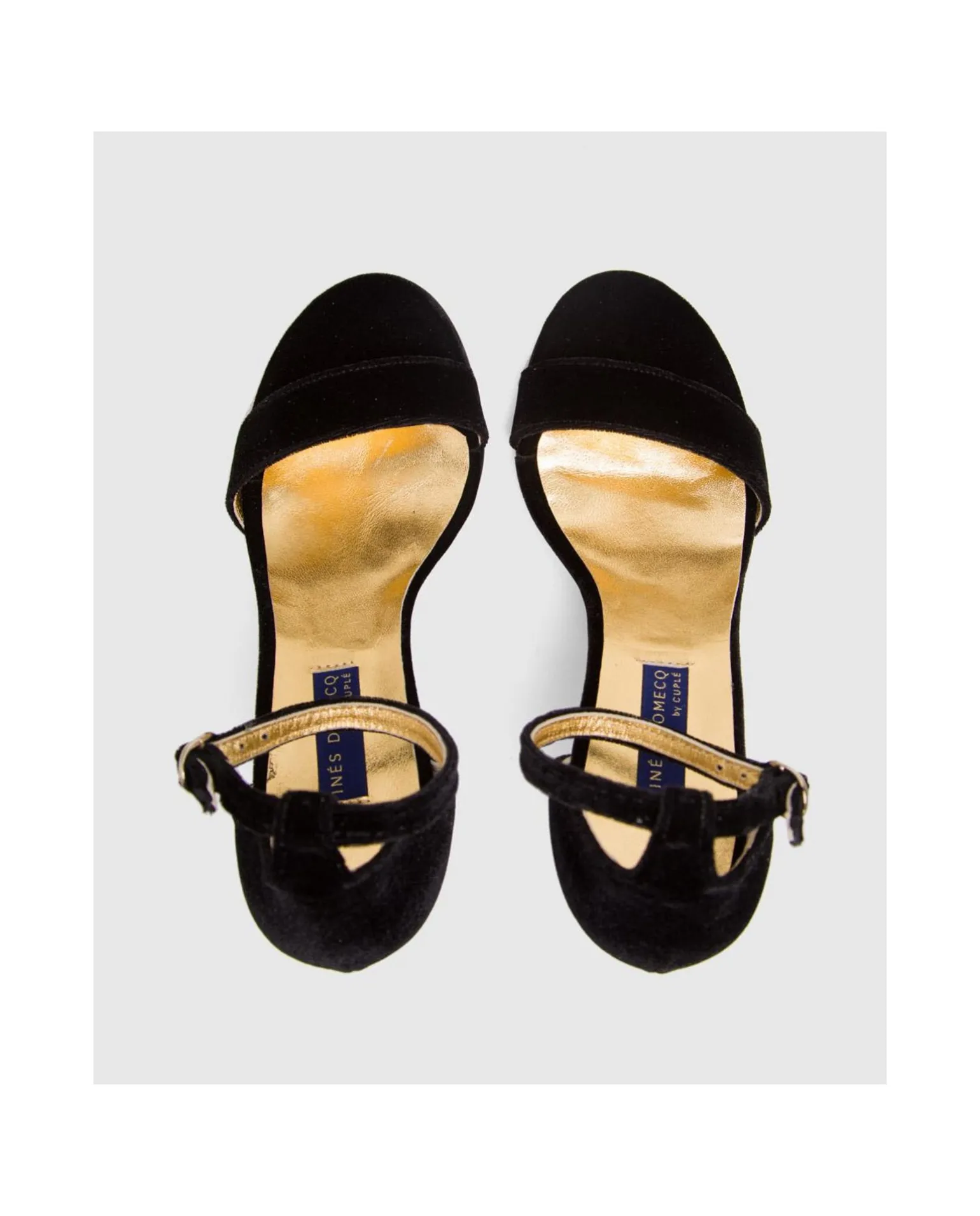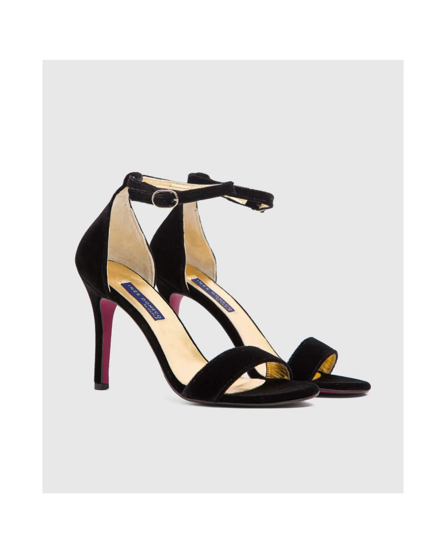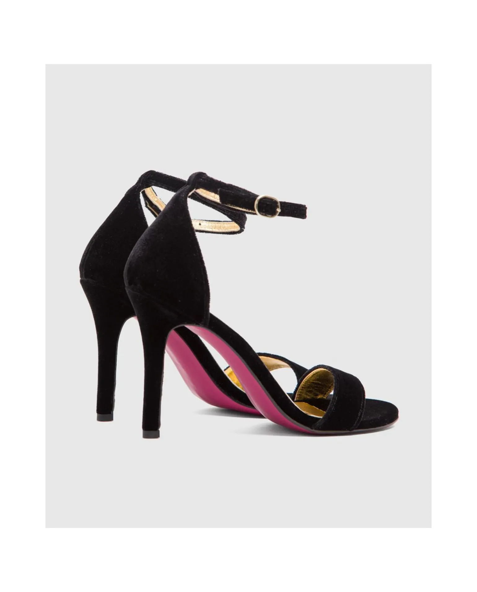 Sandalia En Terciopelo Color Negro. Pala En El Mismo Tono. Tacón Alto Y Fino. Con Pulsera
