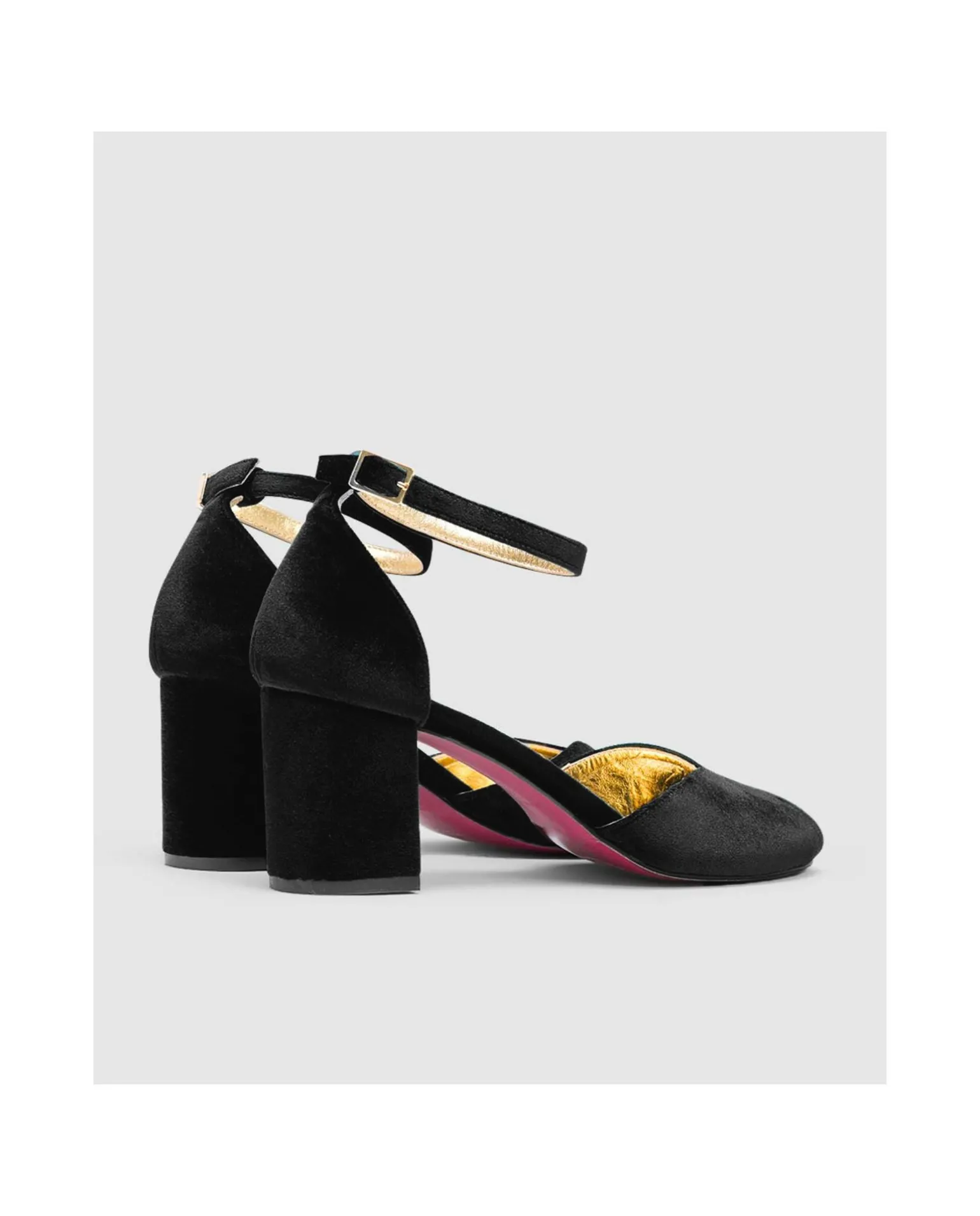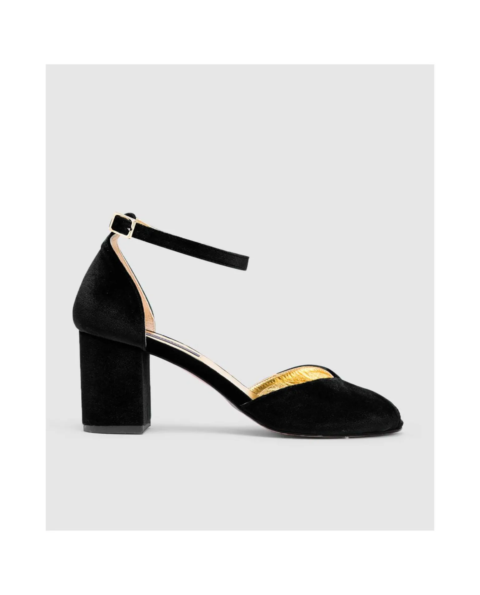 Sandalia De Tacón Medio Grueso. Elaborada En Tercipelo. Con Pulsera.