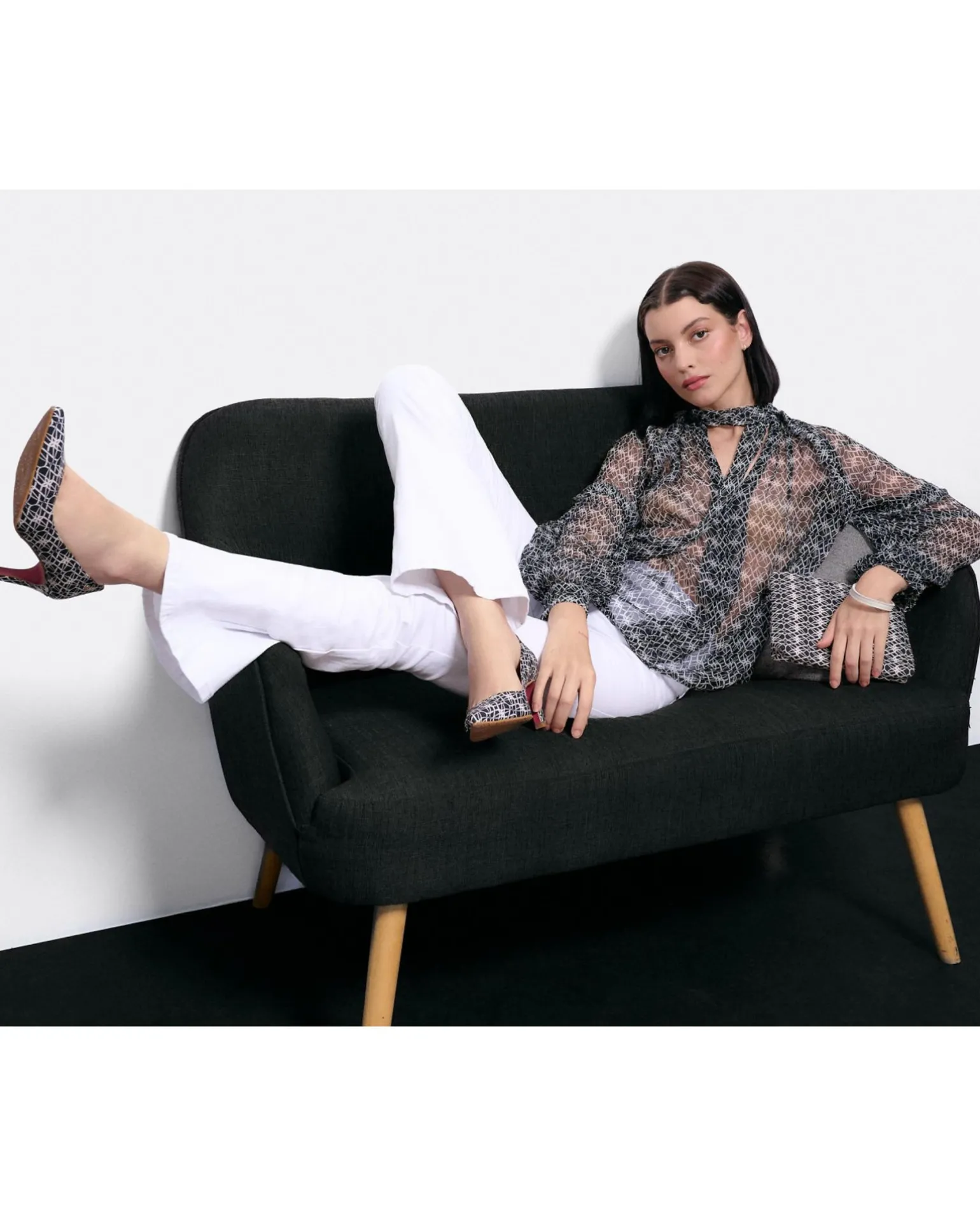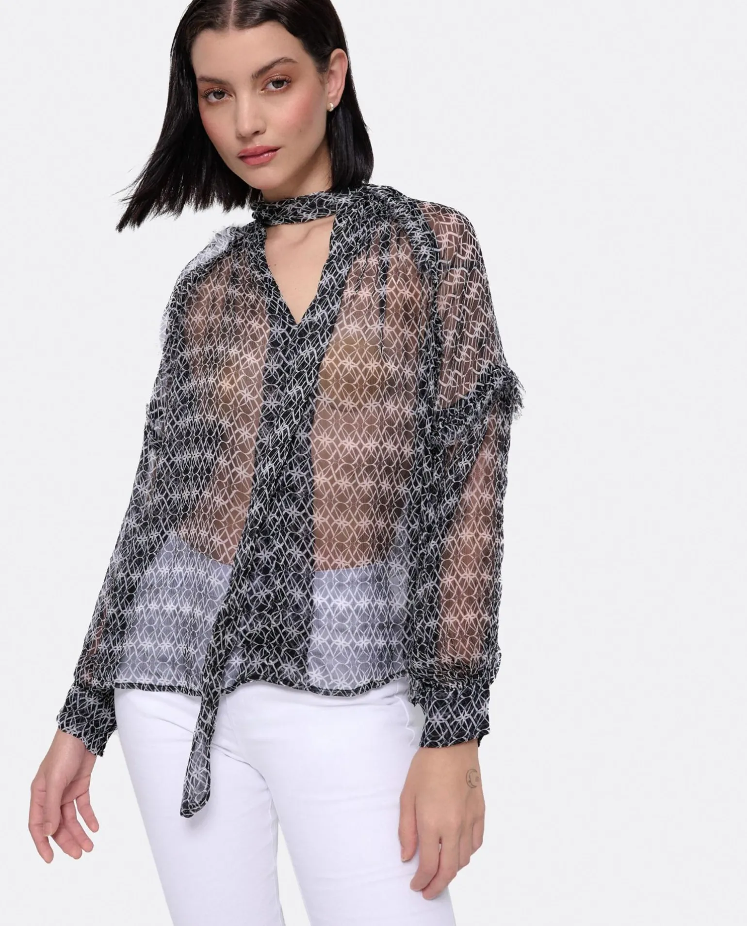 Maxiblusa Romántica Confeccionada En Gasa Con Un Estampado Monogram. Únete A La Tendencia De Las Transparencias Con Este Modelo Estilo Oversize Coronado Con Un Lazo Al Cuello.