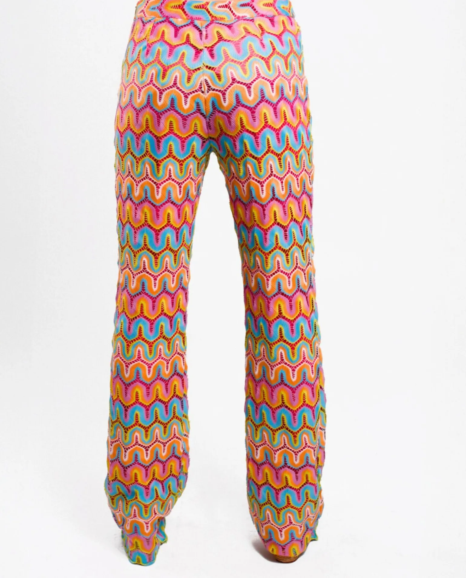 DescripciónPantalón Largo De Campana En Crochet Multicolor. Combínalo Con El Top Sin Mangas A Juego, O Atrévete A Crear Tu Mejor Look Desde Cero.