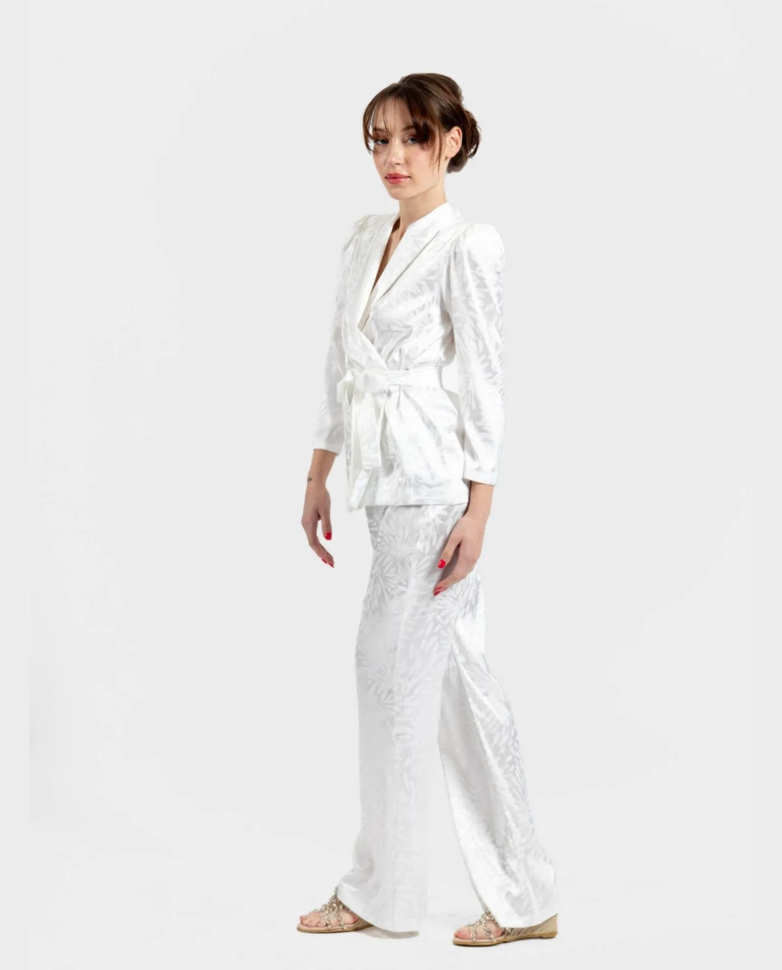 DescripciónPantalón Largo De Corte Recto Jacquard Con Motivos Florales El Blanco. Ideal Para Combinar Con Su Americana A Juego, O Atrévete A Crear Tus Mejores Looks Desde Cero.
