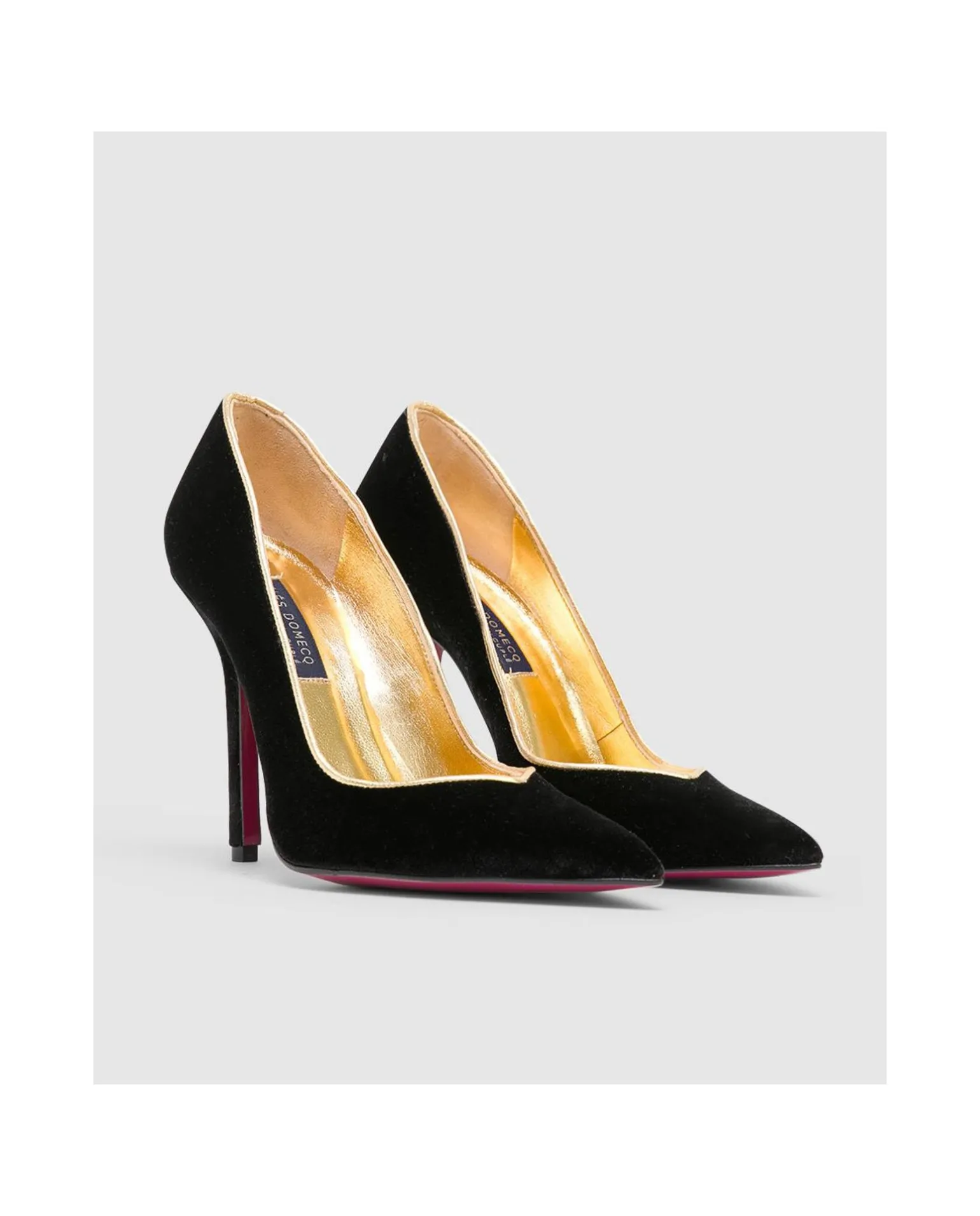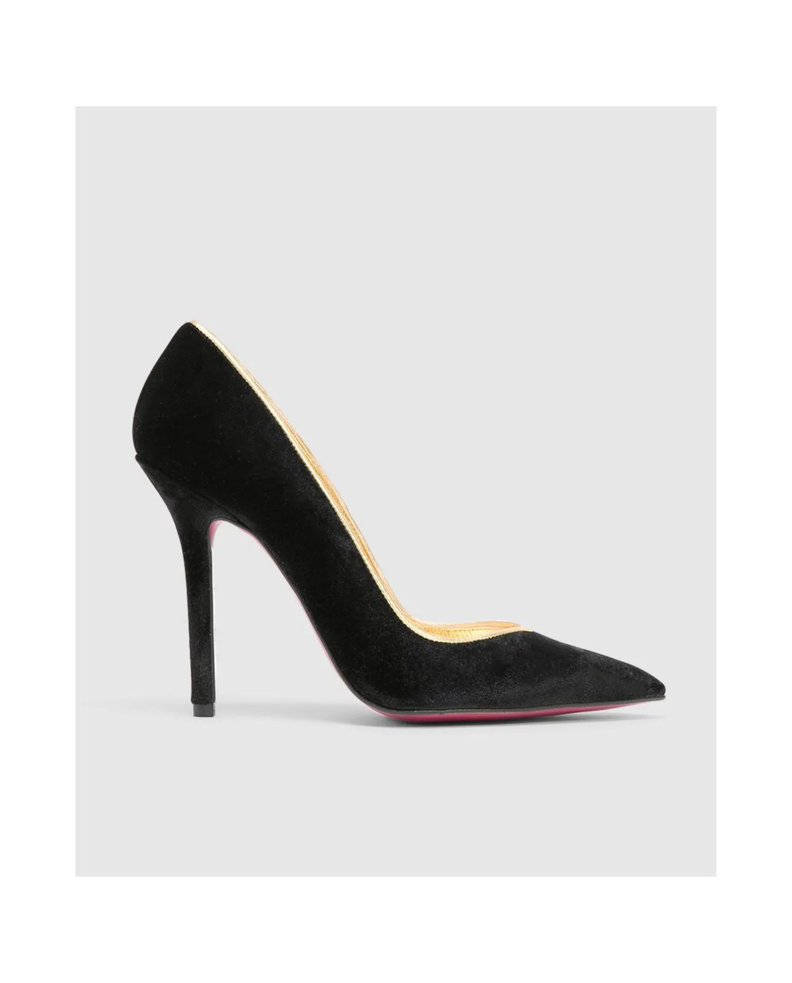 Salon De Tacón Alto Y Fino, Elaborado En Terciopelo. Su Borde Interior En Color Oro Le Da Elegancia.