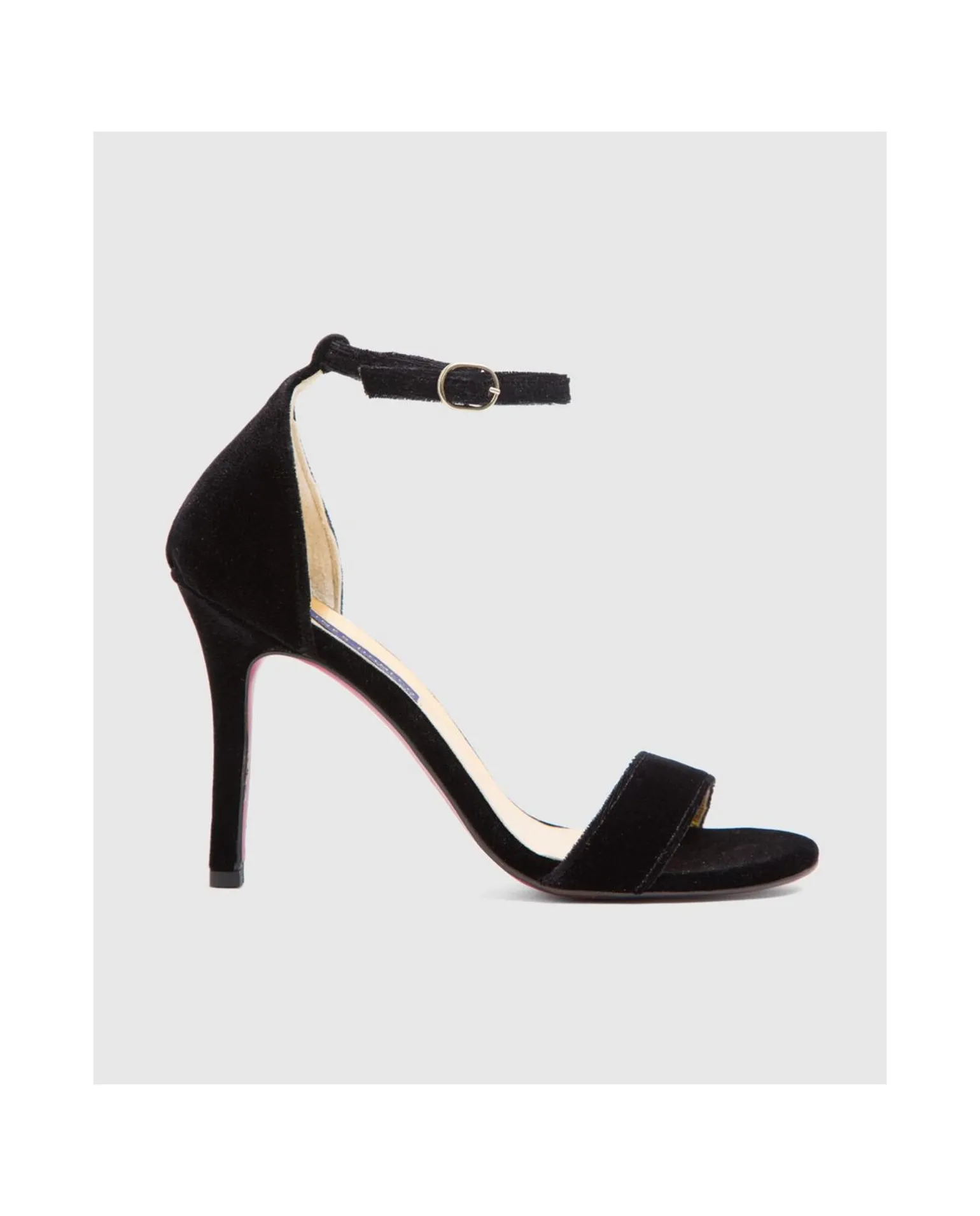 Sandalia En Terciopelo Color Negro. Pala En El Mismo Tono. Tacón Alto Y Fino. Con Pulsera