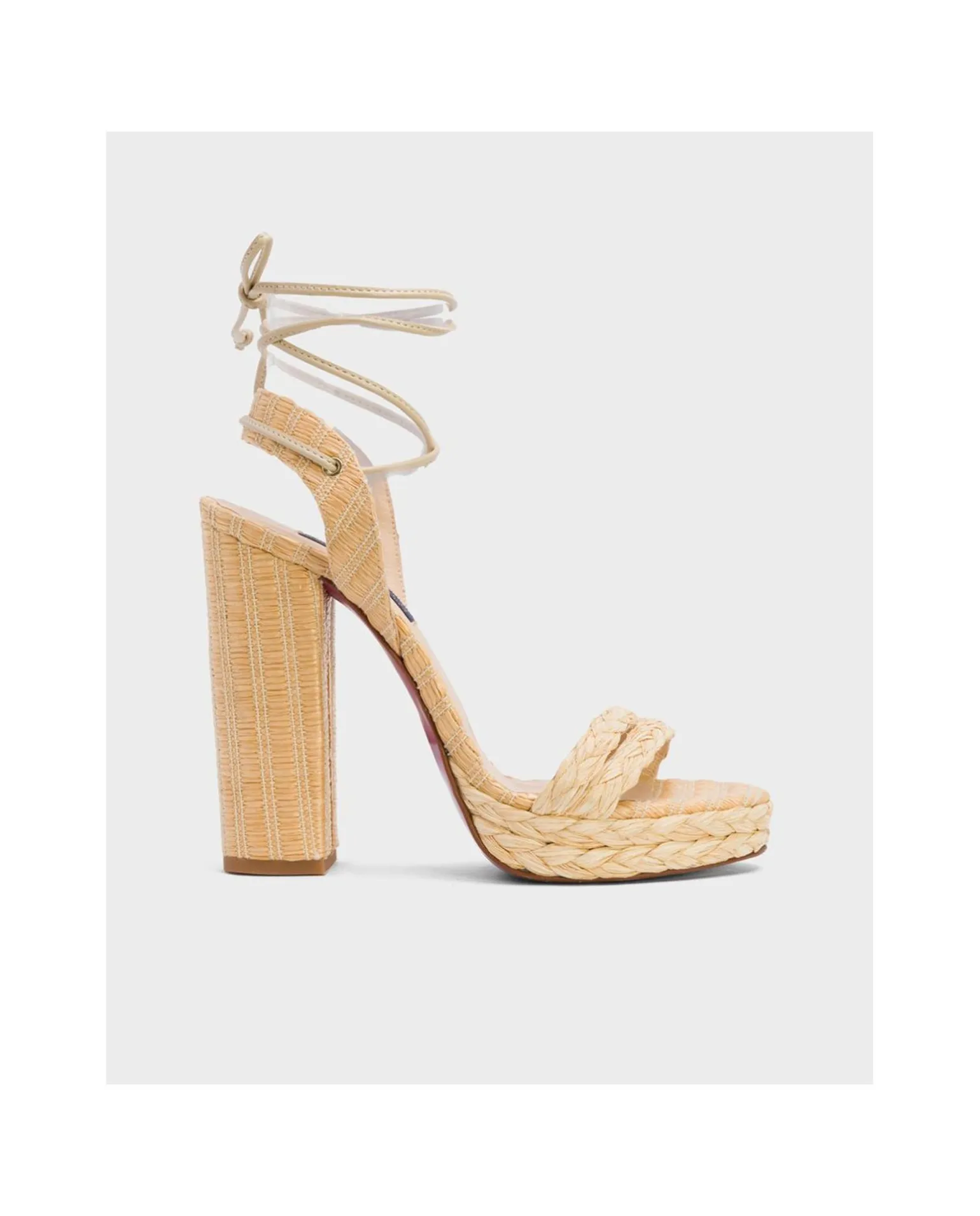DescripciónSandalia Confeccionada En Rafia Color Beig TacÓN En Forma De Bloque Alto,DiseÑAda Con Dos Tiras Delanteras En El Empeine Trenzadas ,Parte Trasera Destalonada Unidaa Cuerdasde Piel Anudadas Ajustables Al Tobillo.DiseÑAdo Y Fabricado Integramente En EspaÑA.Altura TacÓN 10 Cm.Detalles Del Producto