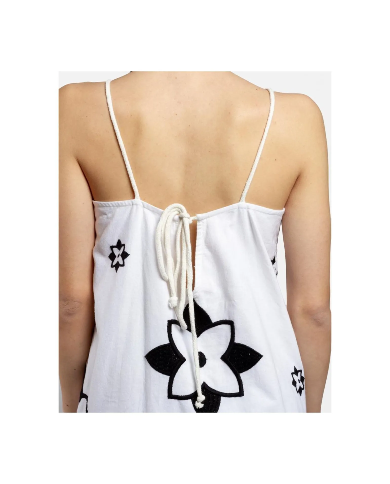 DescripciónVestido De Tirantes De Corte Recto Hasta La Rodilla, Con Estampado De Flores En Negro Sobre Fondo Blanco. Perfecto Para Crear Un Look Fresco Tanto De Día Como Para Un Look Más Formal Por La Noche.