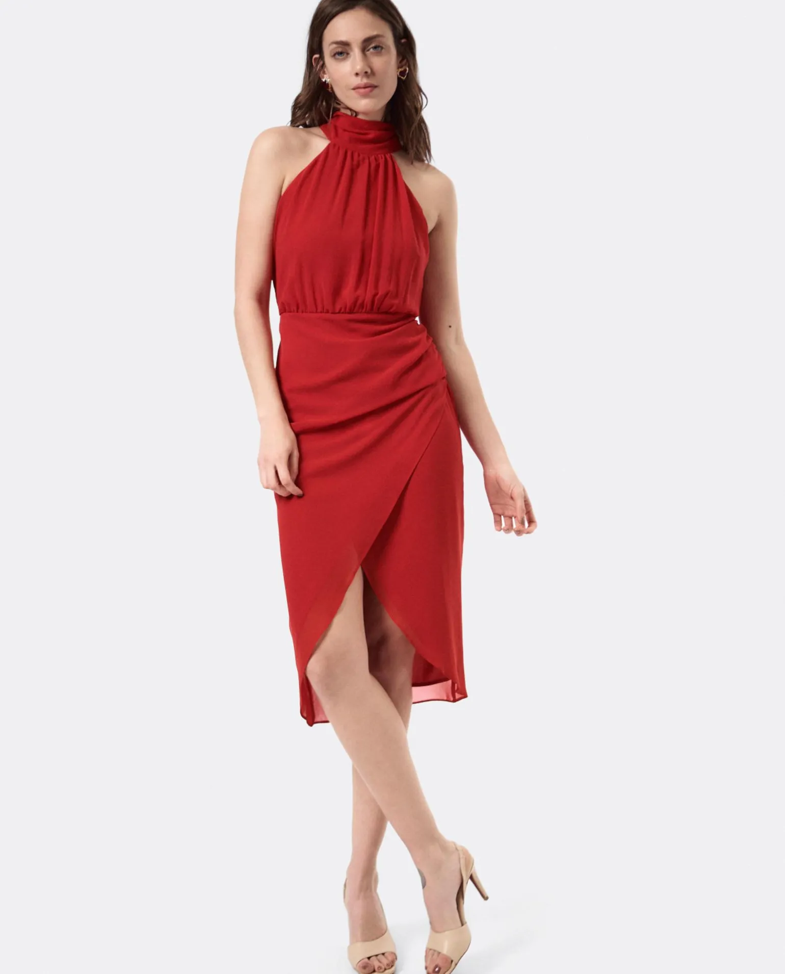DescripciónVestido Escote Halter Gasa Rojo.