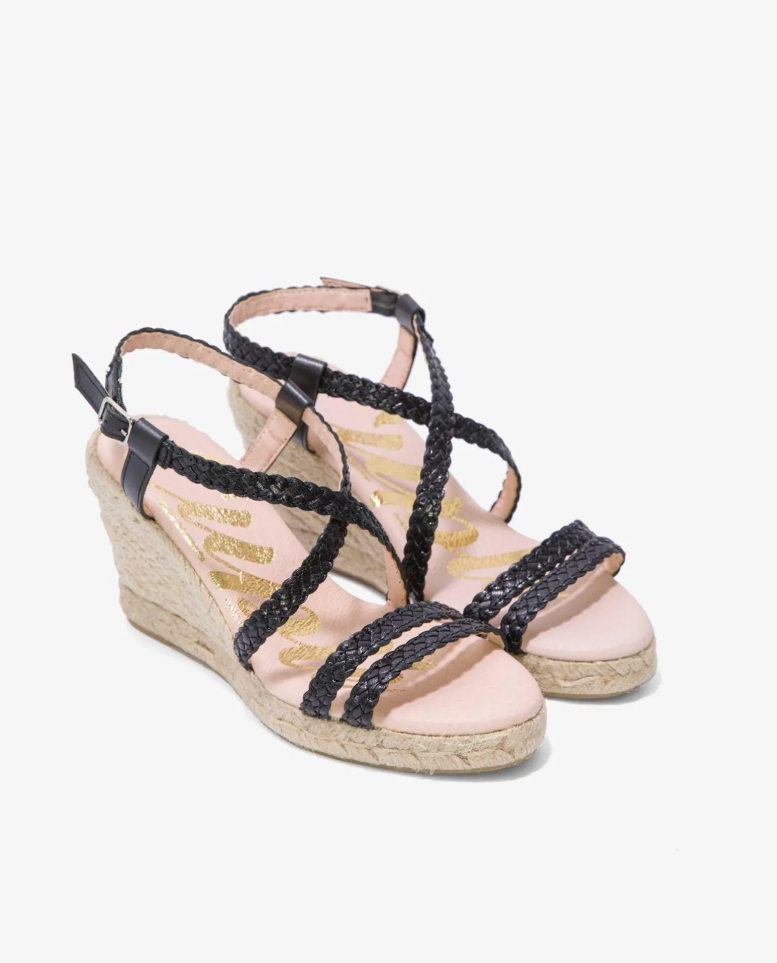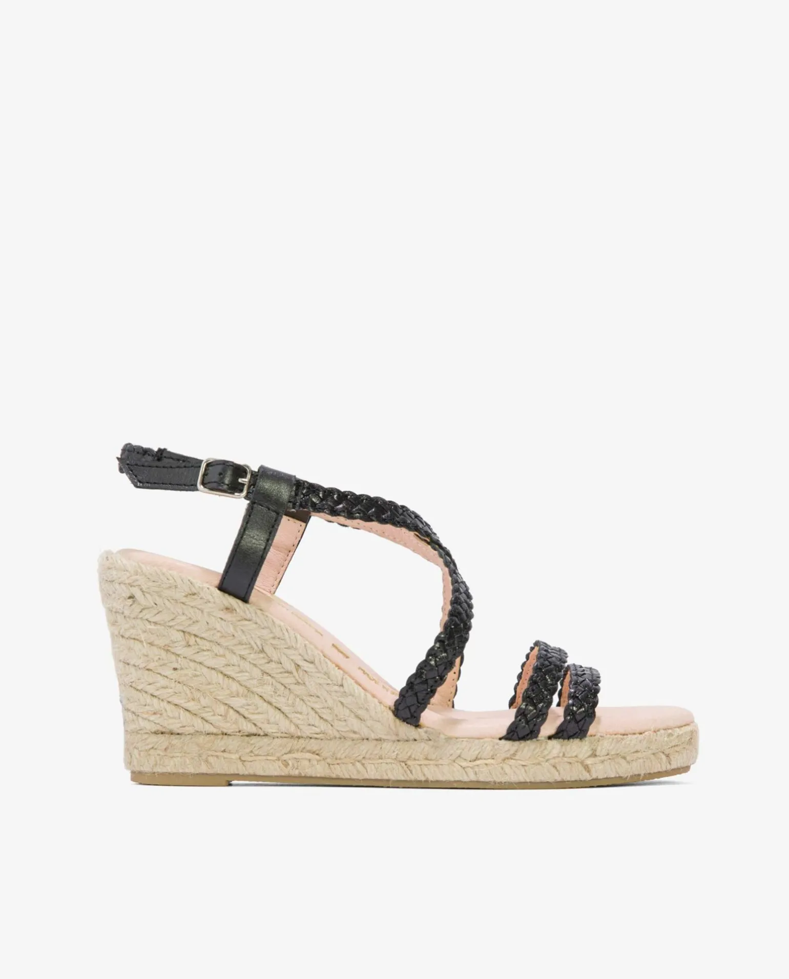 DescripciónCuÑA De Yute En Color Negro Trenzado Con Pulsera Tobillera Del Mismo Color, SujeciÓN Mediante Hebilla Y Plataforma Alta. Es Todo Un ClÁSico Para Esta Temporada Primavera-Verano.Detalles Del Producto